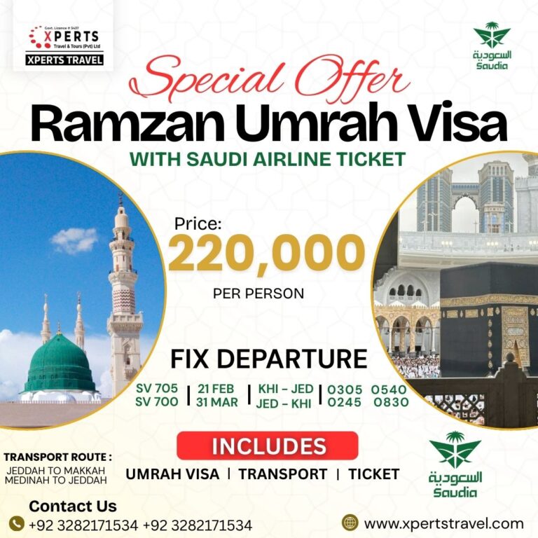 As a trusted name in religious tourism, Xperts Travel provides complete Umrah and Hajj services from Pakistan, ensuring spiritual journeys are seamless, safe, and deeply fulfilling.
